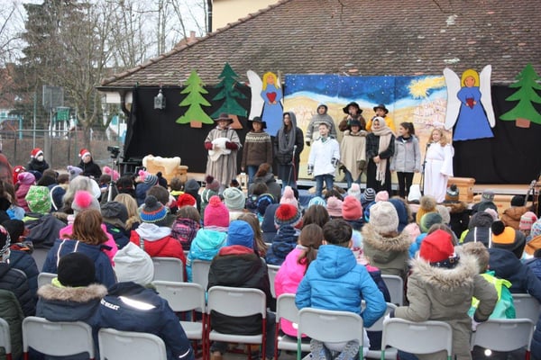 Und natürlich gehören zur Vorweihnachtszeit auch gemeinsame Lieder und ein schönes Miteinander. Unter freiem Himmel trafen sich die Klassen auf dem Schulhof, um gemeinsam ausgewählte Lieder zu singen. Glücklicherweise spielte auch das Wetter mit.