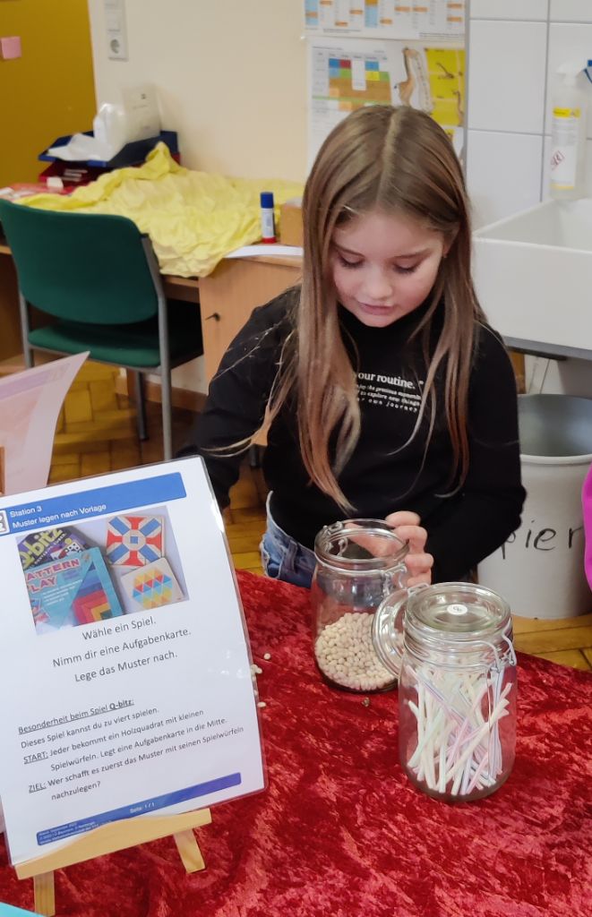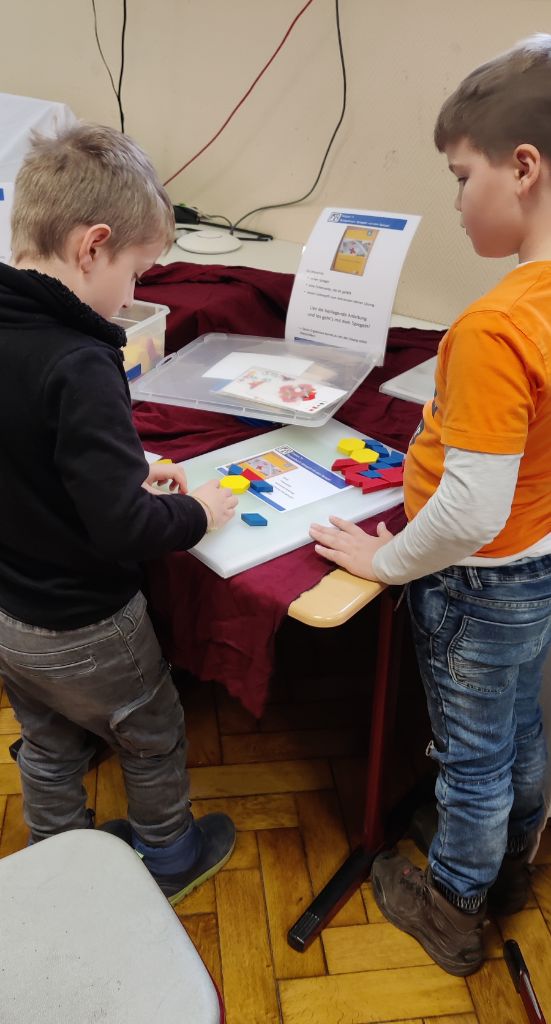 Im Dezember 2022 war die Mathe-Werkstatt an der Leopoldschule. Diese bot viele verschiedene Stationen, die die Kinder ausprobieren konnten. Dabei haben alle Klassen darauf Wert gelegt, achtsam mit den Materialien umzugehen.