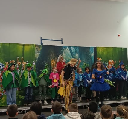 Die Schülerinnen und Schüler saßen gebannt und unterstützten Bella fleißig mit dem eingeübten Mitsinglied in ihrer Mission. Die ausgewählten Mitspielkinder begleiteten Bella vom Zauberwald bis in die Weltmeere. Am Ende waren die Instrumente wieder vereint und die fabelhafte Orchestermusik erklang.