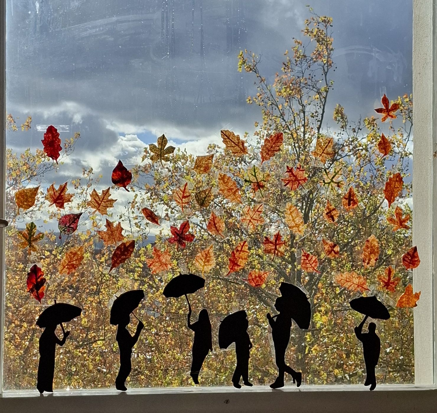 Herbstliche Fensterdeko der Klassen 4a und 2c